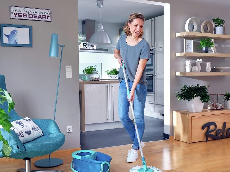 • How Damp? - Choose how moist you want the flat mop to be. Spin the mop by just pressing the handle - the more presses, the dryer it becomes