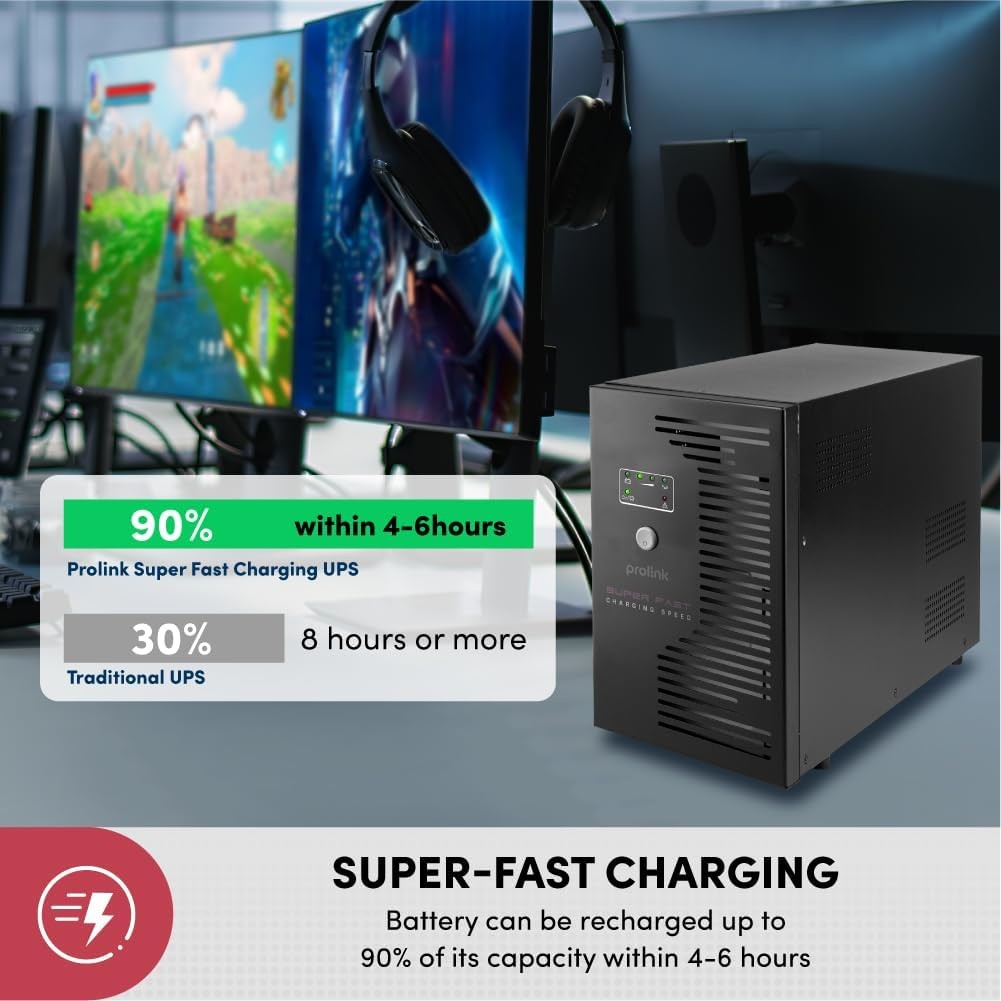 Prolink PRO3000SFCU 3000VA 1800W Line Interactive UPS With AVR/USB Port Super Fast Charging/ 4x Universal Sockets / 2x IEC Sockets
